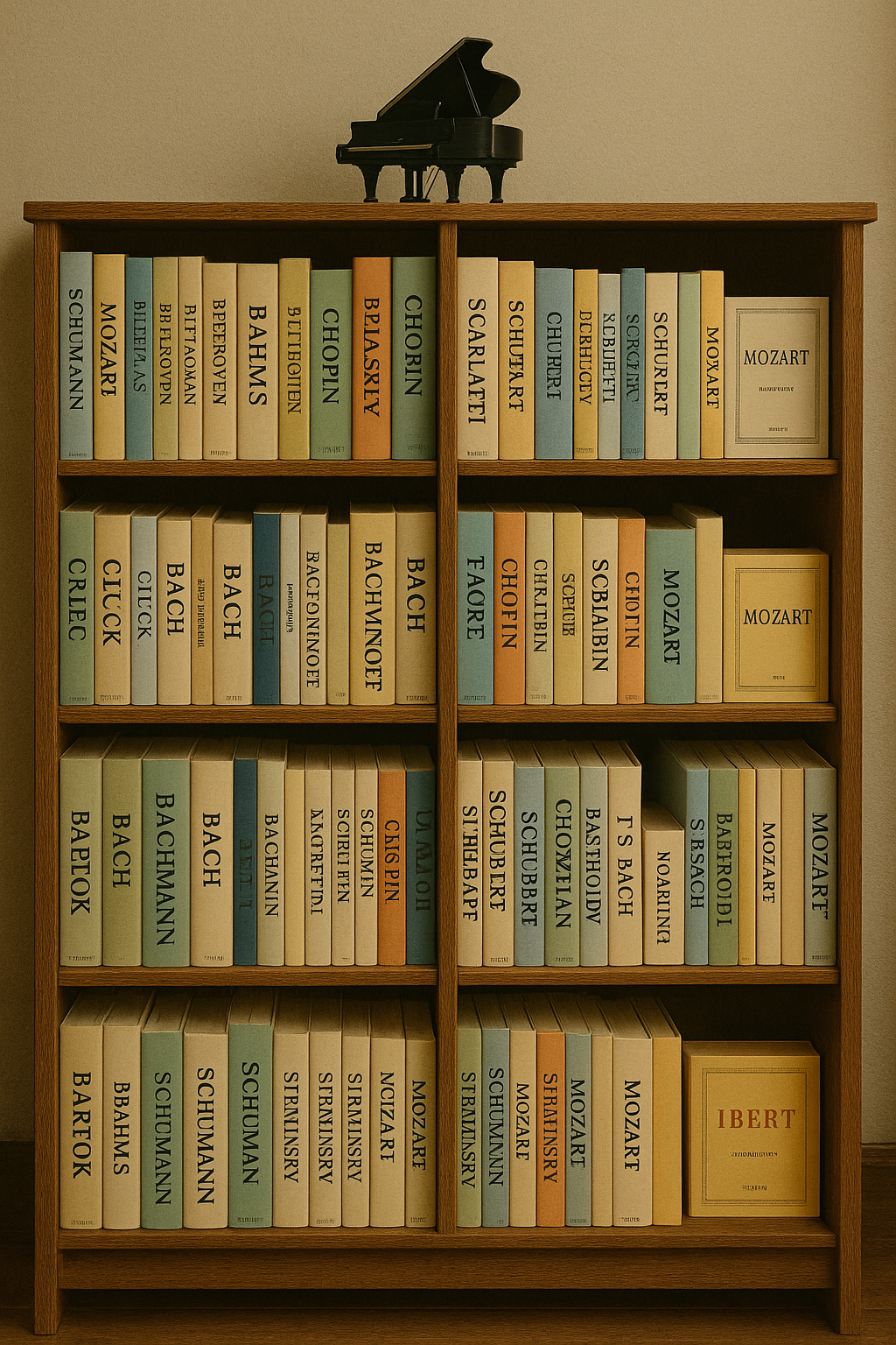 Découvrez la bibliothèque, cette mine d'or où je puise avec minutie dans le patrimoine musical. Entre les œuvres du passé et celles de nos contemporains se cachent des pépites. Voici mes interprétations de compositeurs célèbres ou moins explorés.